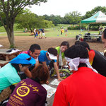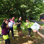 こどもたちに交じってムキになる大人たち。。。オリエンテーリング特有の地図記号と現地を対応させながら進み、ランチタイム!プラン&現在地把握の練習、最後は常設コースのコントロールを利用してミニレースをしました。